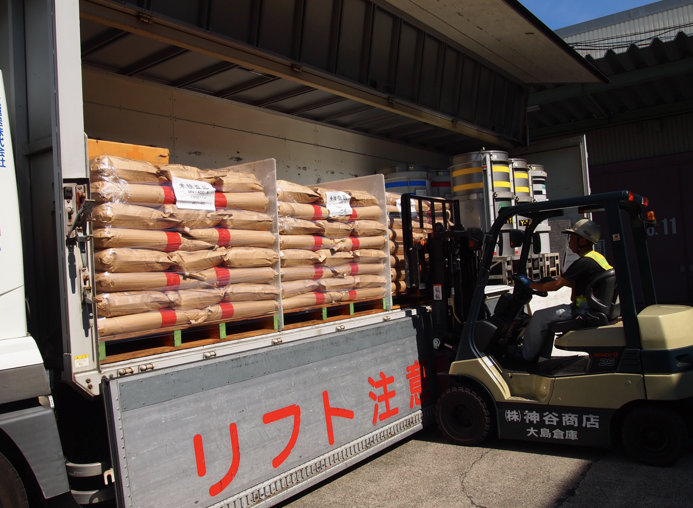 具体的には、フレコンバッグ入り原材料、建築資材、機械部品、パレット積載品などを日常的に取り扱っており、2tを超える重量物の対応も可能です。